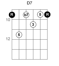 If you can’t read my chord charts here’s how. The numbers on the left of the diagram represent the fret numbers. The numbers on the diagram represent the degree of the major scale that the notes are. Example: 5= D (the 5th) on the G7 diagram. To play it just place your fingers where the numbers are on the diagram