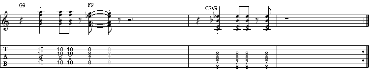 Start to solo on the second beat of the count- off. “Land” /stop with a note on the first beat and play the “chord pattern”. Continue this way “filling the blanks” between the chords.