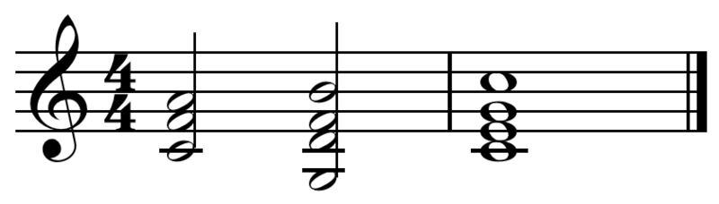 Typically, the three chords used are the chords on the tonic, subdominant, and dominant (scale degrees I, IV and V): in the key of C, these would be the C, F and G chords. Sometimes the V7 chord is used instead of V, for greater tension.
