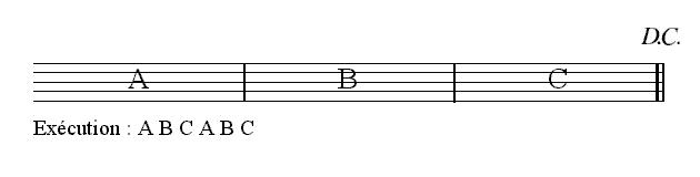 La locution italienne da Capo, c’est-à-dire « depuis le début », abrégé en D.C., indique que le morceau doit être repris depuis le commencement.