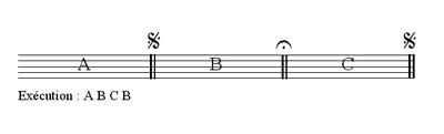 Lorsque le signe du renvoi est utilisé, celui-ci doit apparaître deux fois dans le courant du morceau : tout ce qui est compris entre les deux signes de renvoi doit être répété.