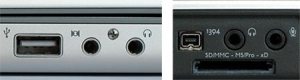 Example Audio-In Ports on Mac (left image, with circle & triangles icon) and PC (with microphone icon)