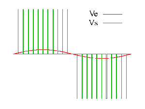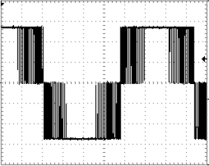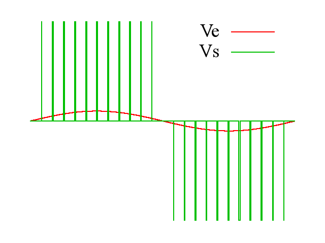 Note : La lettre D est utilisée pour désigner ce type d’amplificateur car c’est la lettre qui vient après C, cela n’est pas une abréviation de « digital ». Les amplificateurs de classe D et E sont parfois qualifiés, à tort, de numériques. Cette confusion vient de la forme d’onde de la sortie qui ressemble à un train d’impulsions numériques. En fait, ces amplificateurs fonctionnent sur le principe de la modulation de largeur d’impulsion. Un signal de sortie numérique serait en modulation d’impulsion codée.