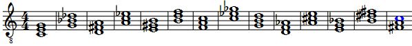 On se retrouve ainsi avec les 2 triades : C- E-G, et G-Bb- Db sur les quelles on peut jouer gamme et accords.