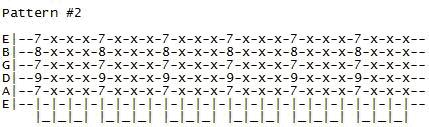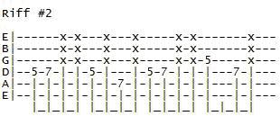 The following riff is more advanced and that makes it a bit more difficult to play, but this sounds very funky, when played correctly. As written above, you can recognize, that i used the first method how to change pattern.
