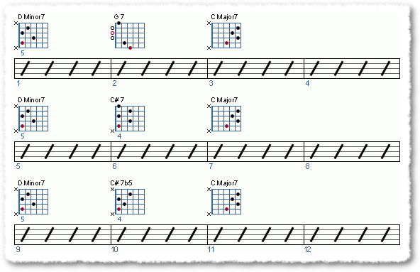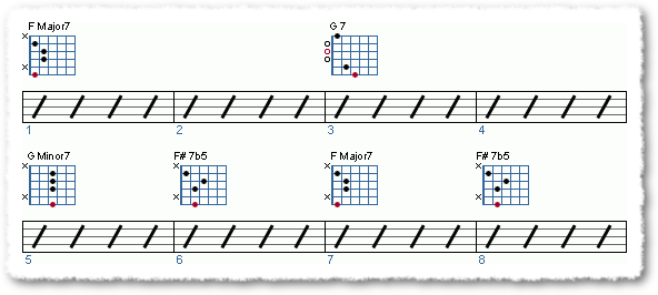 In chordal playing there are several substitution rules one can apply. One of these is the tritone substitution. This substitution is used a lot in jazz although it’s not confined to jazz. This lesson will show you how and where to apply it.
