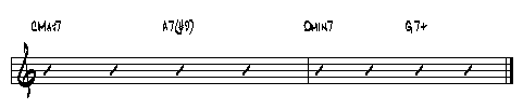 Here’s a completely different turnaround taken from the Miles Davis tune “Half Nelson”. It makes use of the “tritone substitution” principle (more on that later):