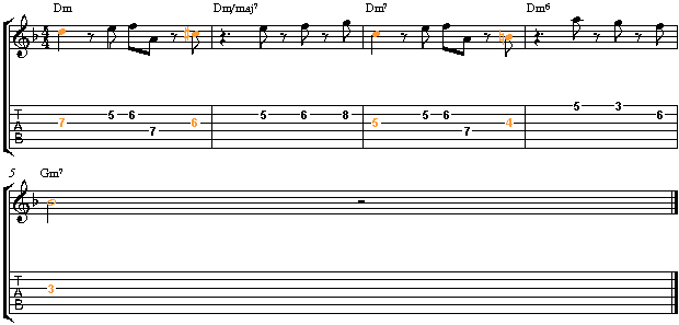 | Over Dm7 | 1 b3 11 5 b7 |