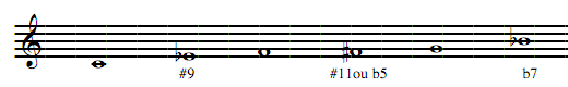 Ce sont les notes de la pentatonique mineure de C aux quelles est rajoutée la #11, ici F#