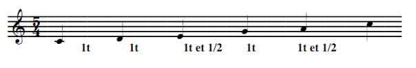 Une gamme majeure pentatonique est une gamme majeure dont on aurait ôté la quarte et la septième :