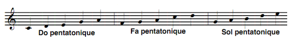 On peut extraire 3 gammes majeures pentatoniques de cette forme à partir d’une gamme majeure (du degré I, du degré IV et du degré V) :