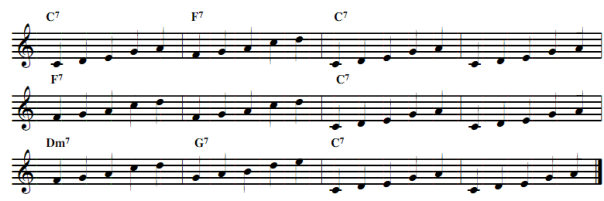 Si on utilise le 5ème mode de la pentatonique majeure de Do, on l’appellera La mineur pentatonique et si on rajoute augmentée de La on obtient la gamme blues de La