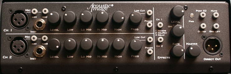 - Direct Out: +4 dB, balanced, XLR, ground lift, pre/post EQ selector, switchable 10 dB pad
