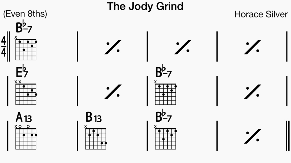 The Jody Grind December 9, 2013 Return to: iRealb chords scores for our favorites tunesFull resolution (960 × 540) Image navigation Previous Image Next Image