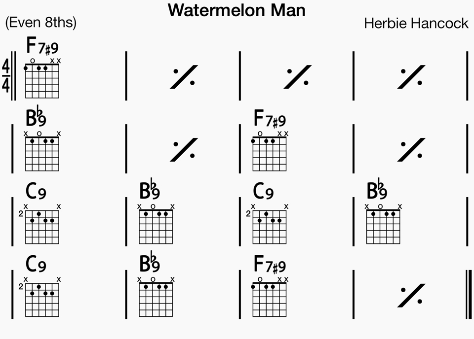 Watermelon Man December 9, 2013 Return to: iRealb chords scores for our favorites tunesFull resolution (960 × 688) Image navigation Previous Image Next Image
