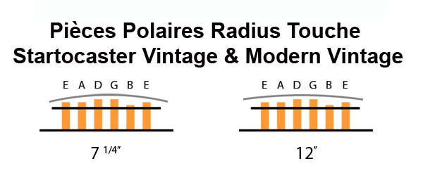 Une autre chose importante à noter est que les pièces polaires décalées des micros (comme les micros simple bobinage style vintage ) ont été initialement conçus pour les guitares Fender vintage, qui ont un petit radius de 7,25”. Ceux-ci parfois ne fonctionnent pas bien avec un radius plat, les cordes du milieu sont bien plus forte, en particulier la corde de sol (de plus, ce type de micros a également été conçu pour des cordes filées). Il y a une solution pour éviter ce problème, qui est de régler les micros plus bas (plus loin des cordes), ainsi l’équilibre de chaque cordes s’égalisera. L’inconvénient de cette solution, c’est que vous perdez du volume avec des micros réglé plus bas. vous devriez aussi savoir qu’il y a des micros “modernes vintage”, qui ont également les pièce polaires décalées.